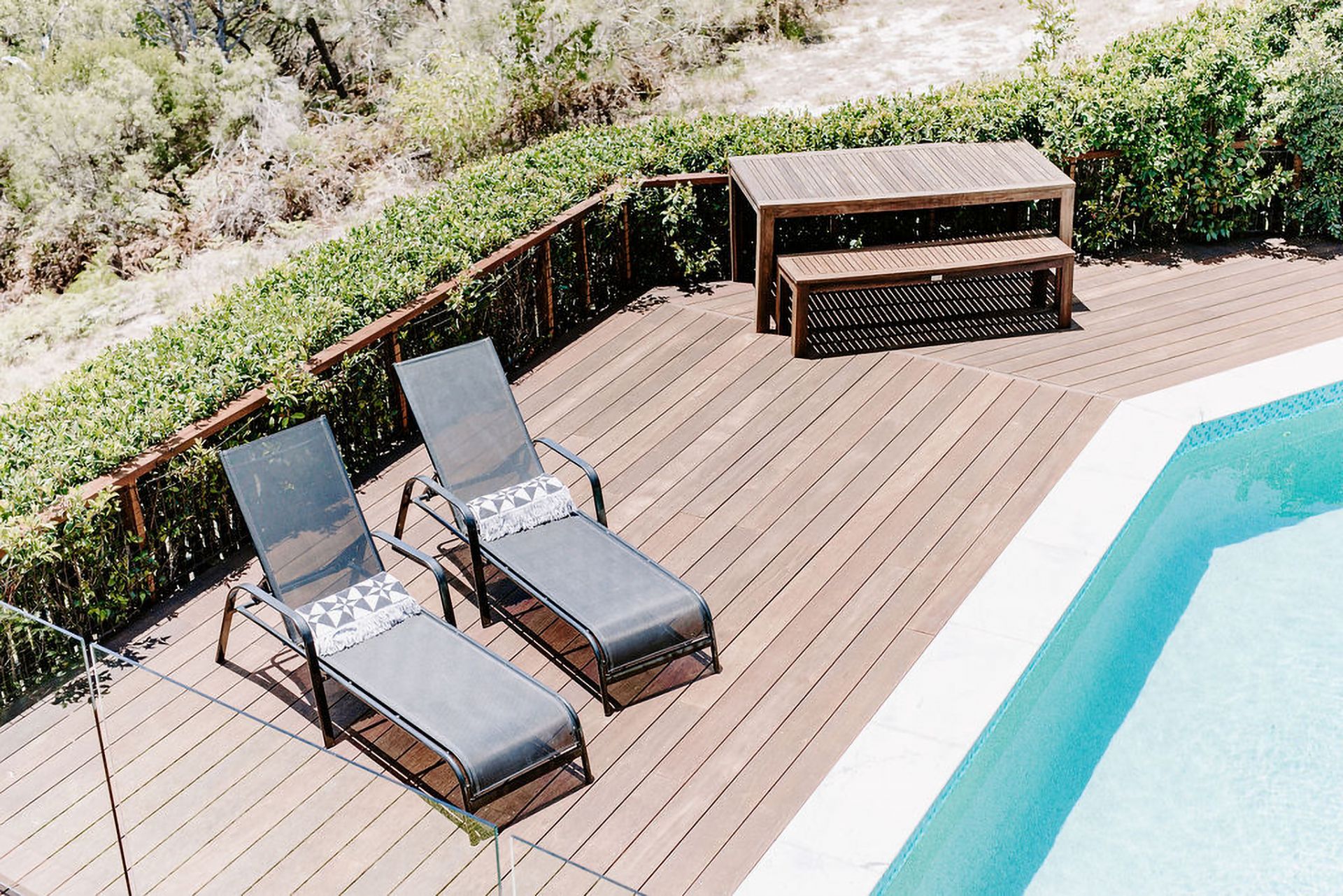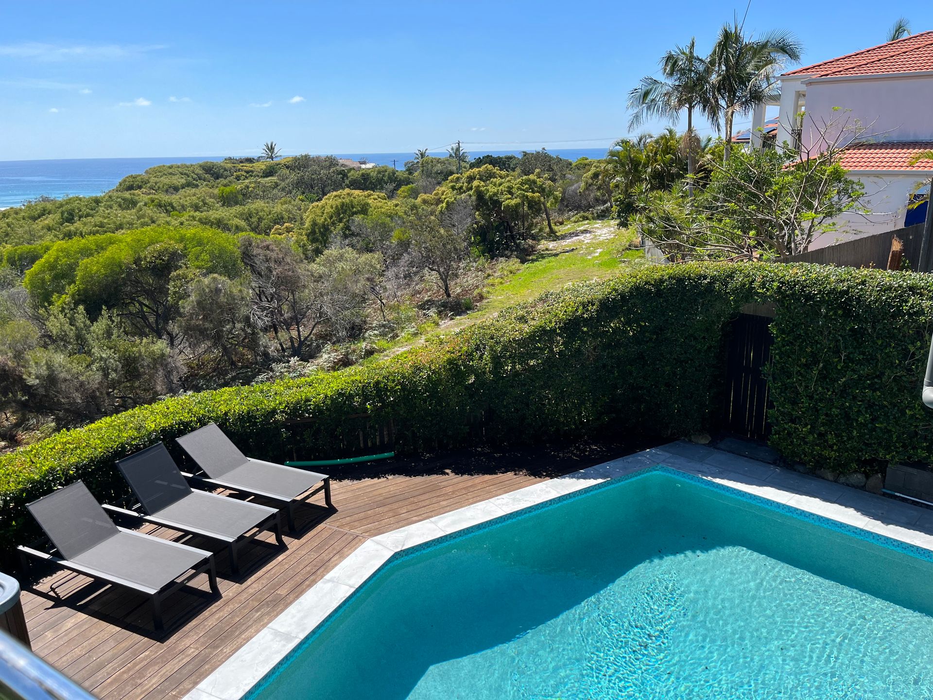 On the lower level is the fourth bedroom (1 x queen and 1 x single) plus a separate living zone, bathroom and kitchenette, complete with washing machine and microwave – totally self-contained and overlooks the stunning pool and fully landscaped gardens with ocean view outdoor shower.