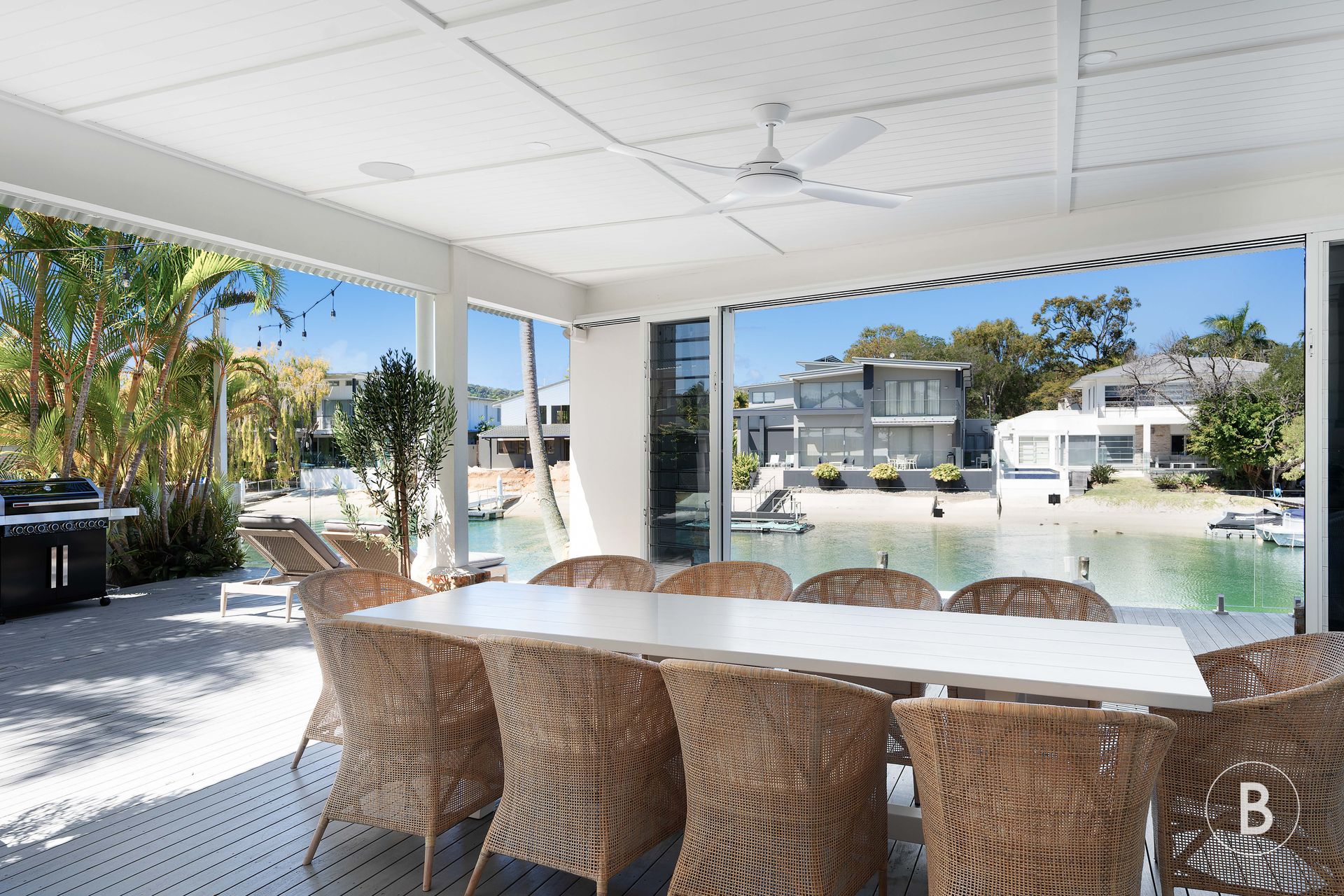 The outdoor space at LUCY is a true oasis where you can lounge on the sun-drenched terrace, sip on a refreshing cocktail, and feel the stresses of everyday life melt away all whilst overlooking Noosa River and its incredible year round sunsets. Guests also have access to a private jetty (available for mooring on request - additional costs may apply) with the water & sand at your feet below.