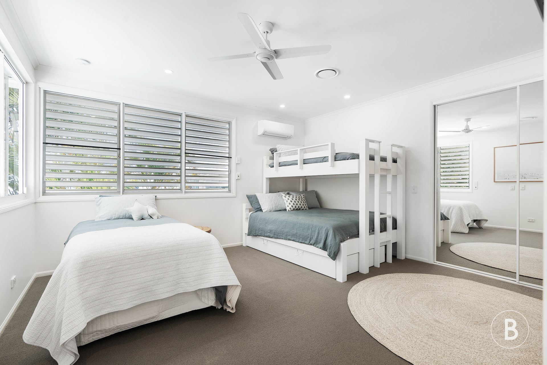 Each of the 4 spacious bedrooms at LUCY have been meticulously styled & designed to provide ultimate comfort and tranquility. The master bedroom w/ ensuite sits at the rear of the property on the upper level overlooking the water with its own private balcony. Two other bedrooms sit at the front of the property on the upper level, one with a King bed & the other a large Family Room with a Tri bunk (Queen + king single + king single trundle) + separate king single – perfect for one entire family. They are linked by a bathroom with a sunken bath & walk in shower.