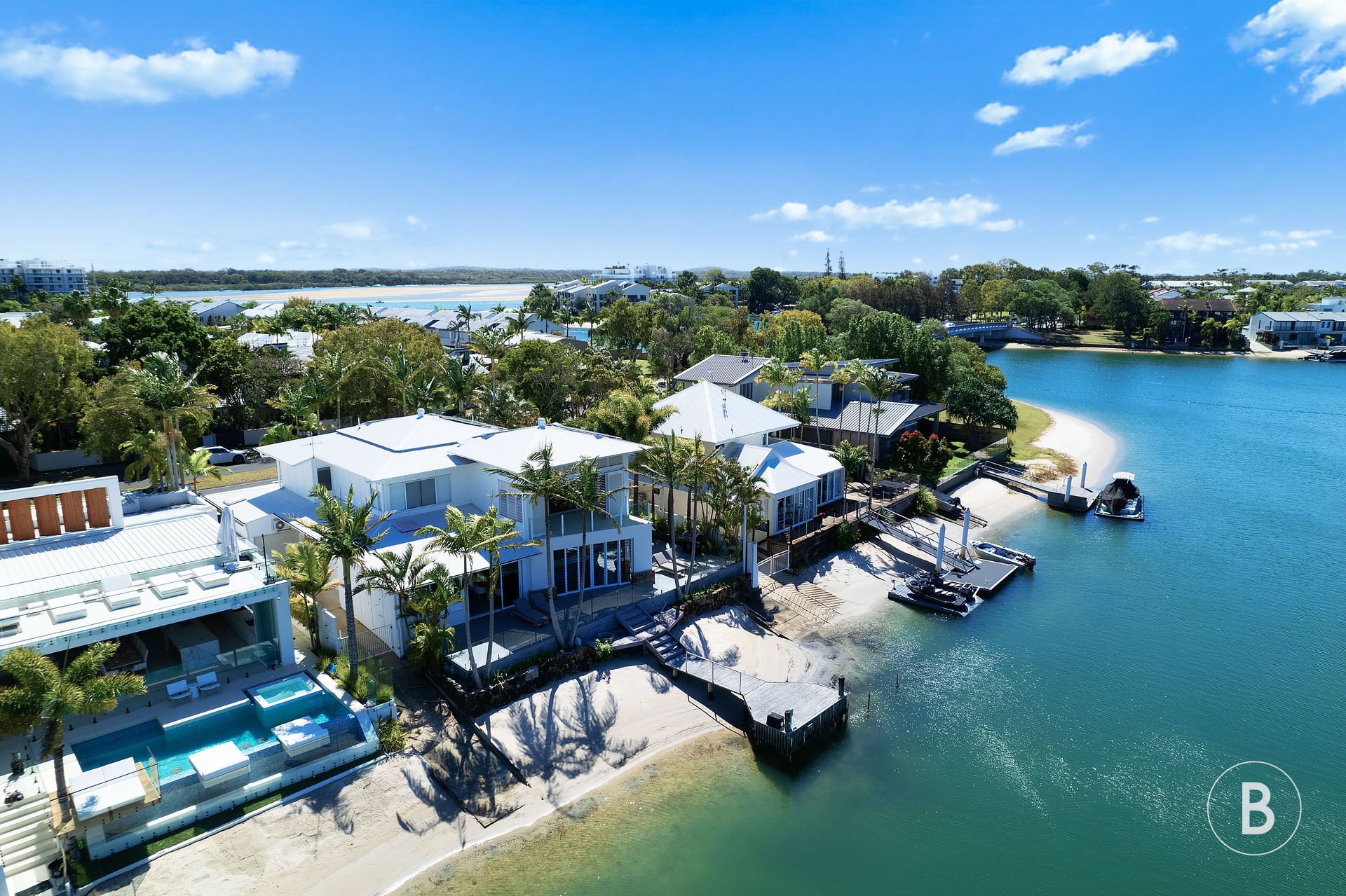 From the moment you step into this exquisite retreat, you’ll be captivated by its modern design and impeccable attention to detail. The open-plan living area is adorned with sleek furnishings and floor-to-ceiling windows that showcase the stunning views of the water just steps away with your very own private river frontage sandy beach.