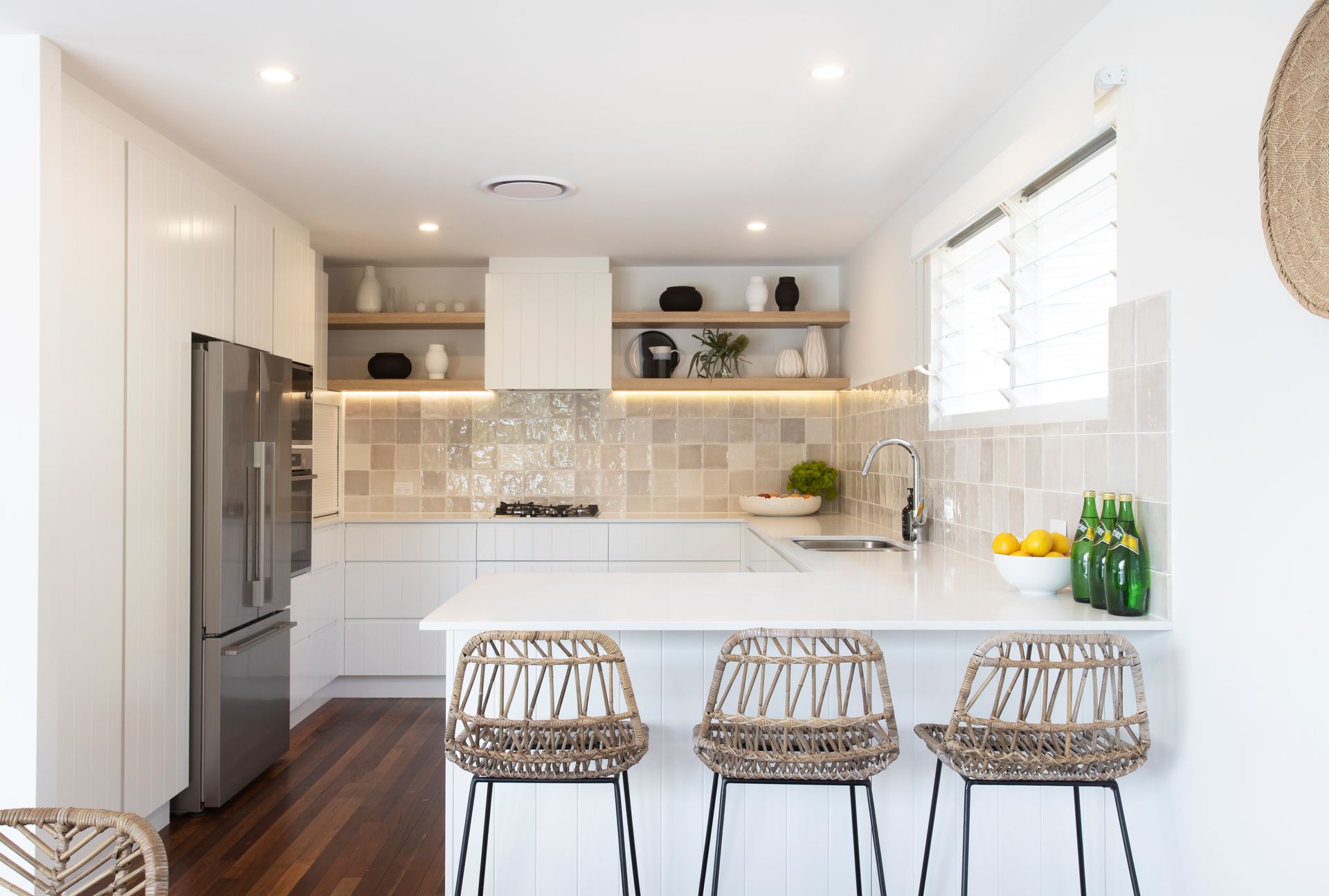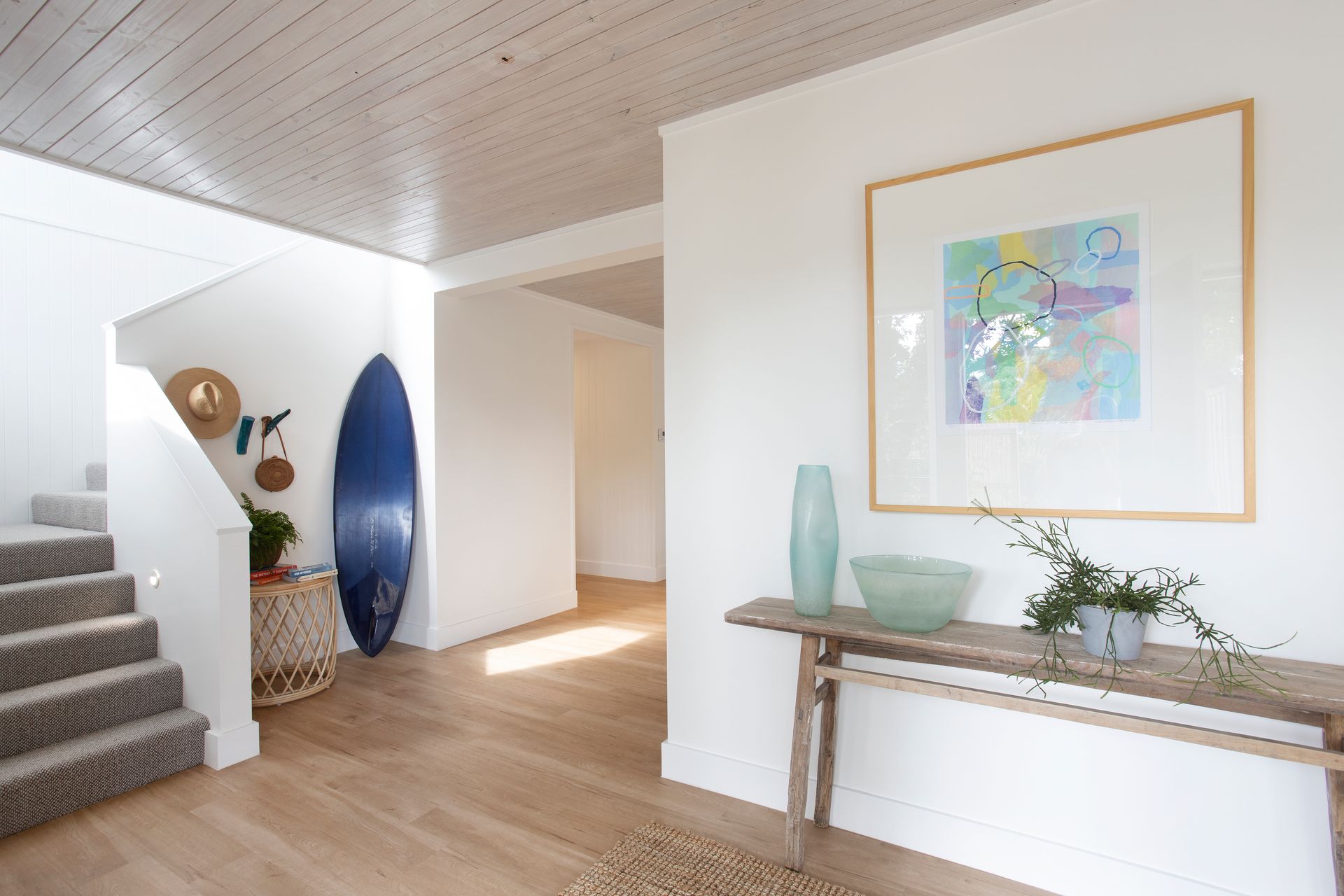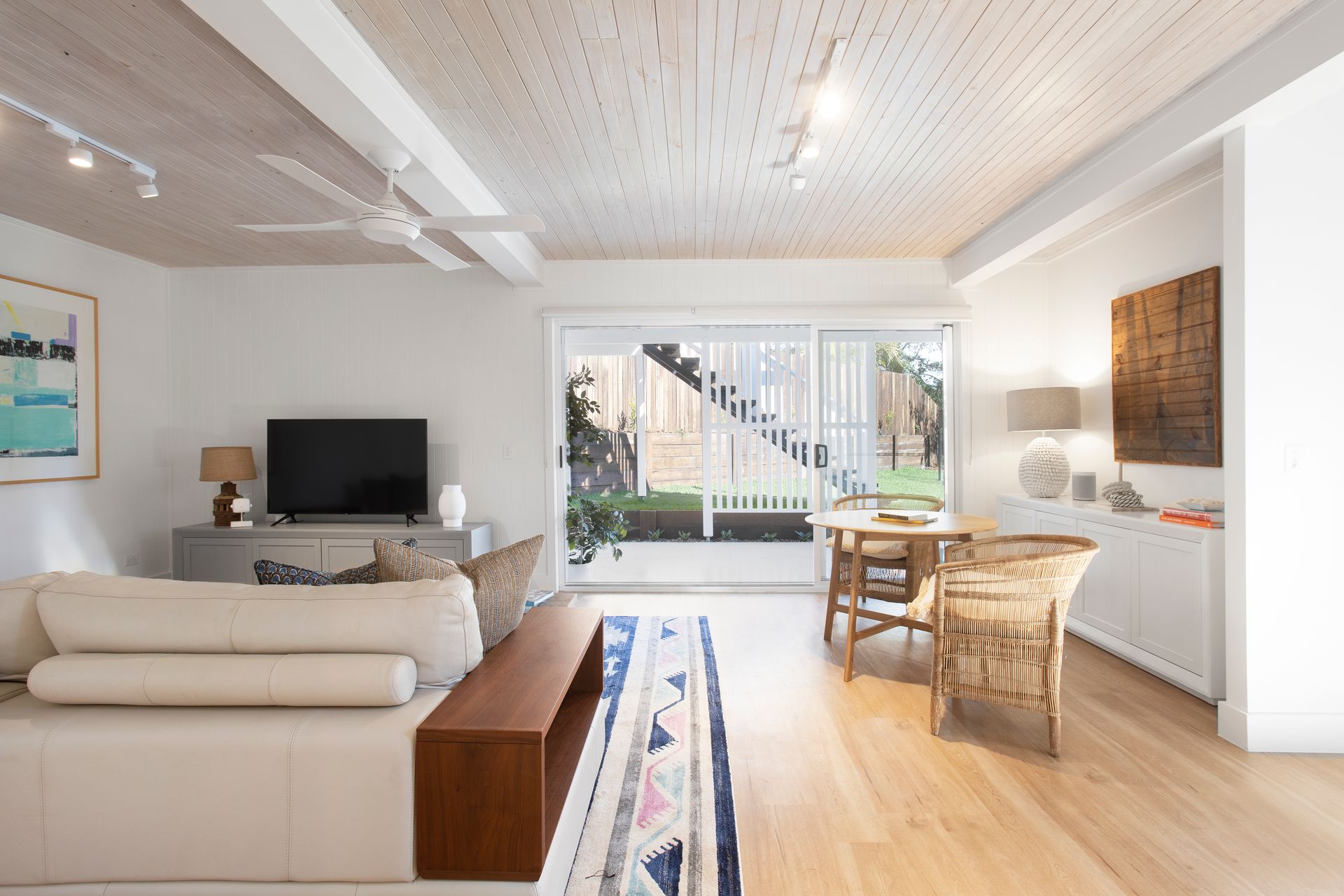 With a stylish coastal colour palette, this home features a gorgeous collection of furniture & artwork from around the world – brand new beds, hotel quality bed linen / towels, stunning linen curtains, coastal wool-sisal carpet (salt & pepper tones), louvered windows all with fly wires, feature blonde wood timber ceiling (downstairs) & original hardwood polished floor boards (upstairs).