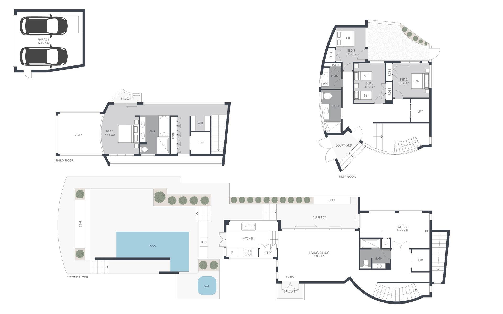 Bedroom 4: 2 x Single Beds, Air Conditioning, Balcony Access, Courtyard Access, Built-in robe, Private Balcony, Ceiling Fan