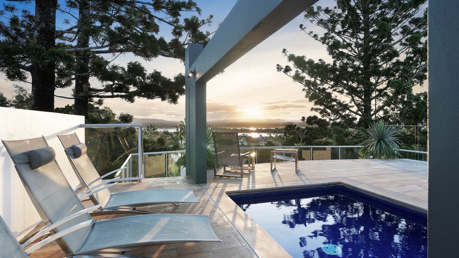 JUNE seamlessly blends indoor and outdoor living, providing panoramic views of the skyline, mountains, river and Noosa's picturesque landscape.